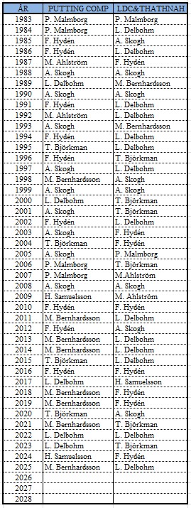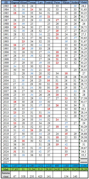 STATISTIK ÖVER SCT huvudtävlingen (poäng)